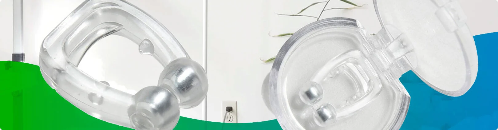 La conception révolutionnaire de l'anneau en silicone de HushDream est à la fois confortable et très efficace. Son utilisation est simple. Insérez-le doucement dans votre nez. Les embouts magnétiques vont le maintenir en place.